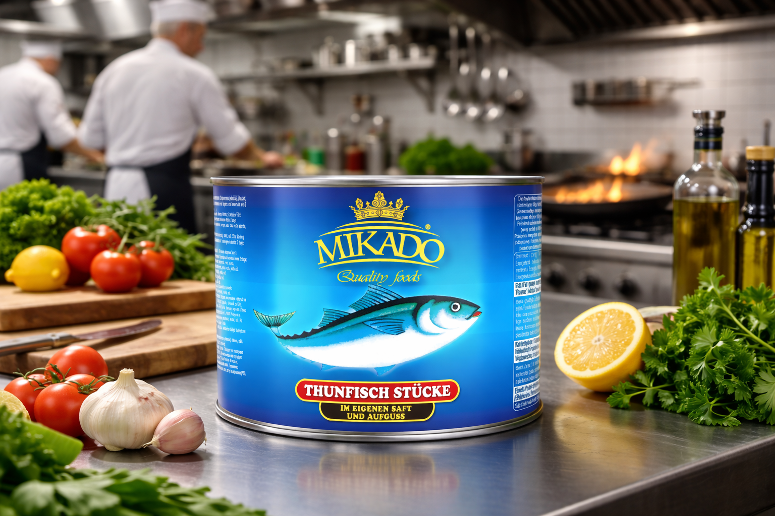 | Lebensmittelrechtliche Verkehrsbezeichnung: | Thunfisch-Stücke in Wasser |